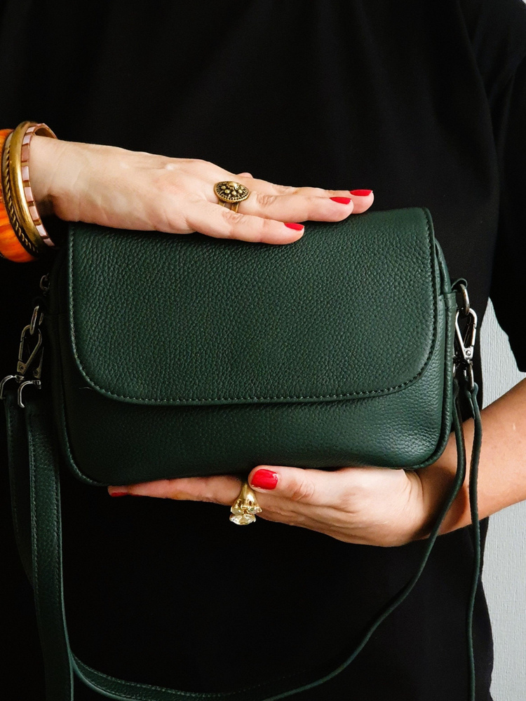 Сумка женская с застежкой клапаном, цвет зеленый / Кожаная сумка кросс