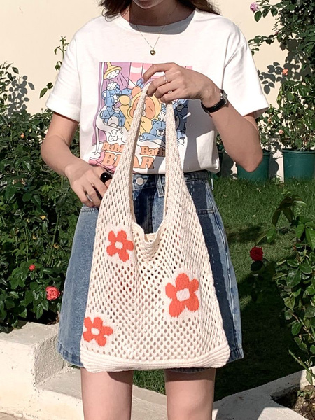 Летняя вязаная сумка шоппер с цветами 2yk милая
