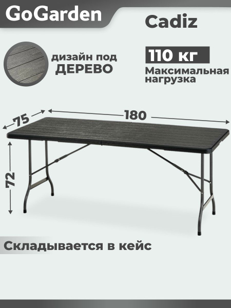 Складной садовый стол GoGarden CADIZ 180x75x72 см, пластик/сталь 50376