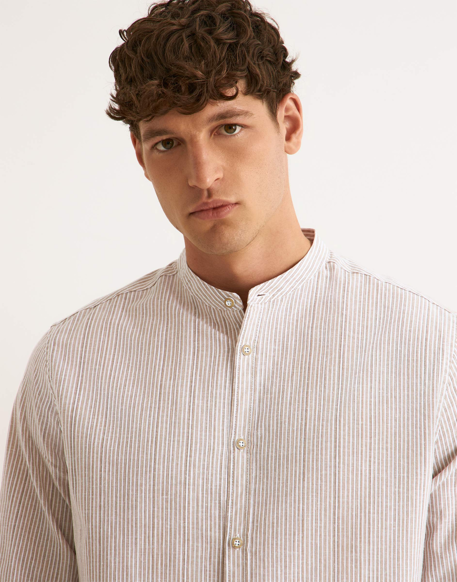 Рубашка с Воротником-Стойкой изо Льна и Хлопка в Полоску