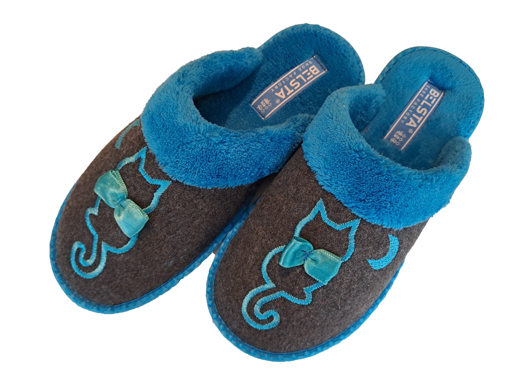 Комнатные тапочки махровые Белста B2491 Котик и луна серо-голубые 36 от