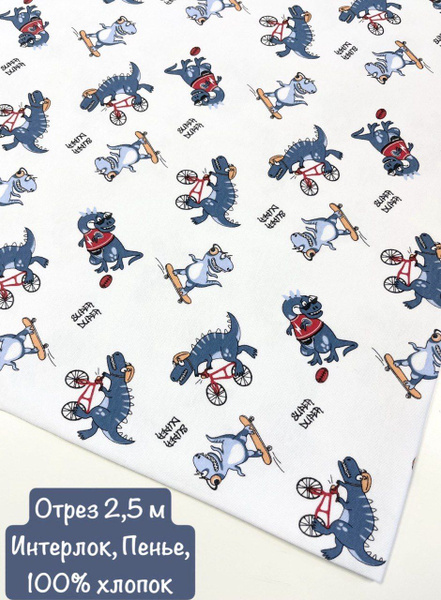 Интерлок ткань для шитья и рукоделия 100% хлопок пенье Дино отрез 2,5 м