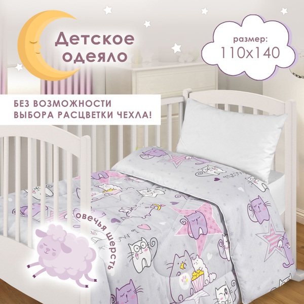 Одеяло детское в кроватку 110x140 см овечья шерсть стеганое Milanika