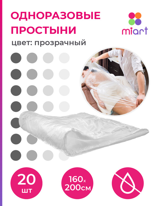 Простыни одноразовые MIART полиэтиленовые, 160х200 см, 20 шт., в пачке