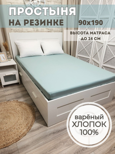 Простыня натяжная однотонная из хлопка для толстых матрасов, scenarioLa
