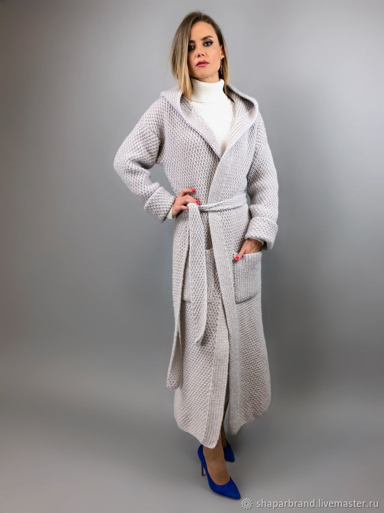 Светло-серый кардиган с капюшоном в интернет-магазине Ярмарка Мастеров