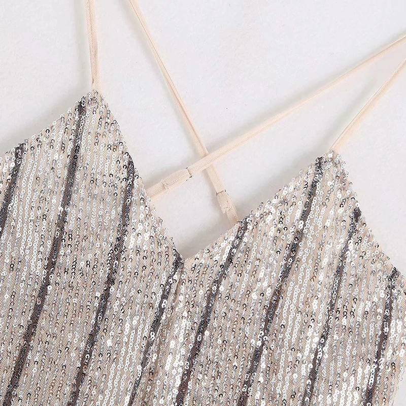 Женское сексуальное блестящее платье миди в полоску с блестками, модные