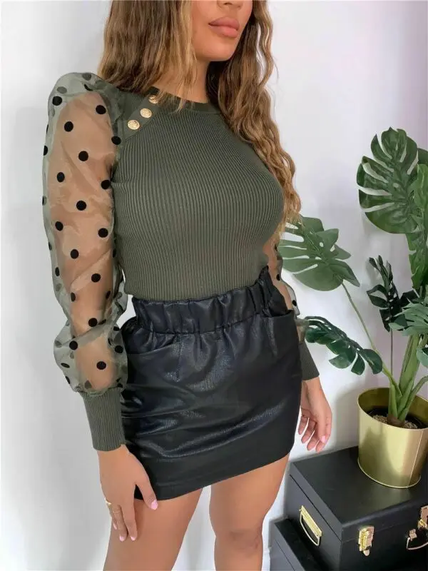 Классические сетчатые блузы в горошек с пышными рукавами, женские
