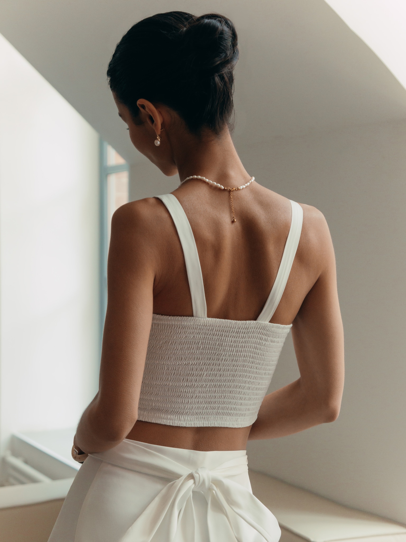 Минималистичный прилегающий кроп-топ на тонких регулируемых бретелях с