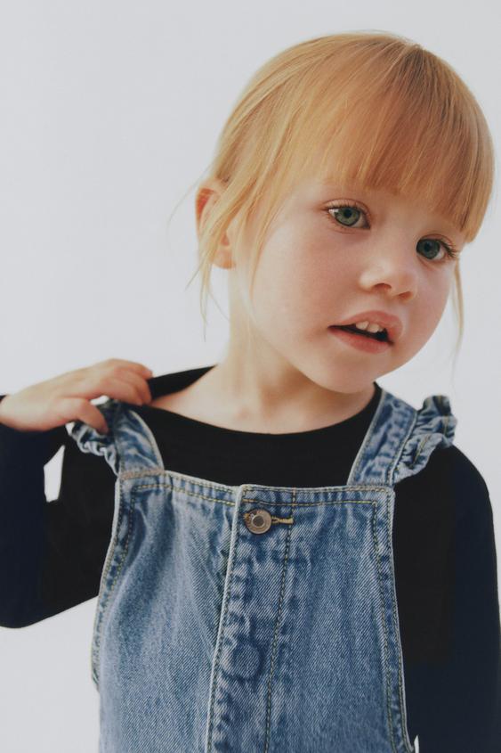 ДЖИНСОВЫЙ КОМБИНЕЗОН С ВОЛАНАМИ НА БРЕТЕЛЯХ