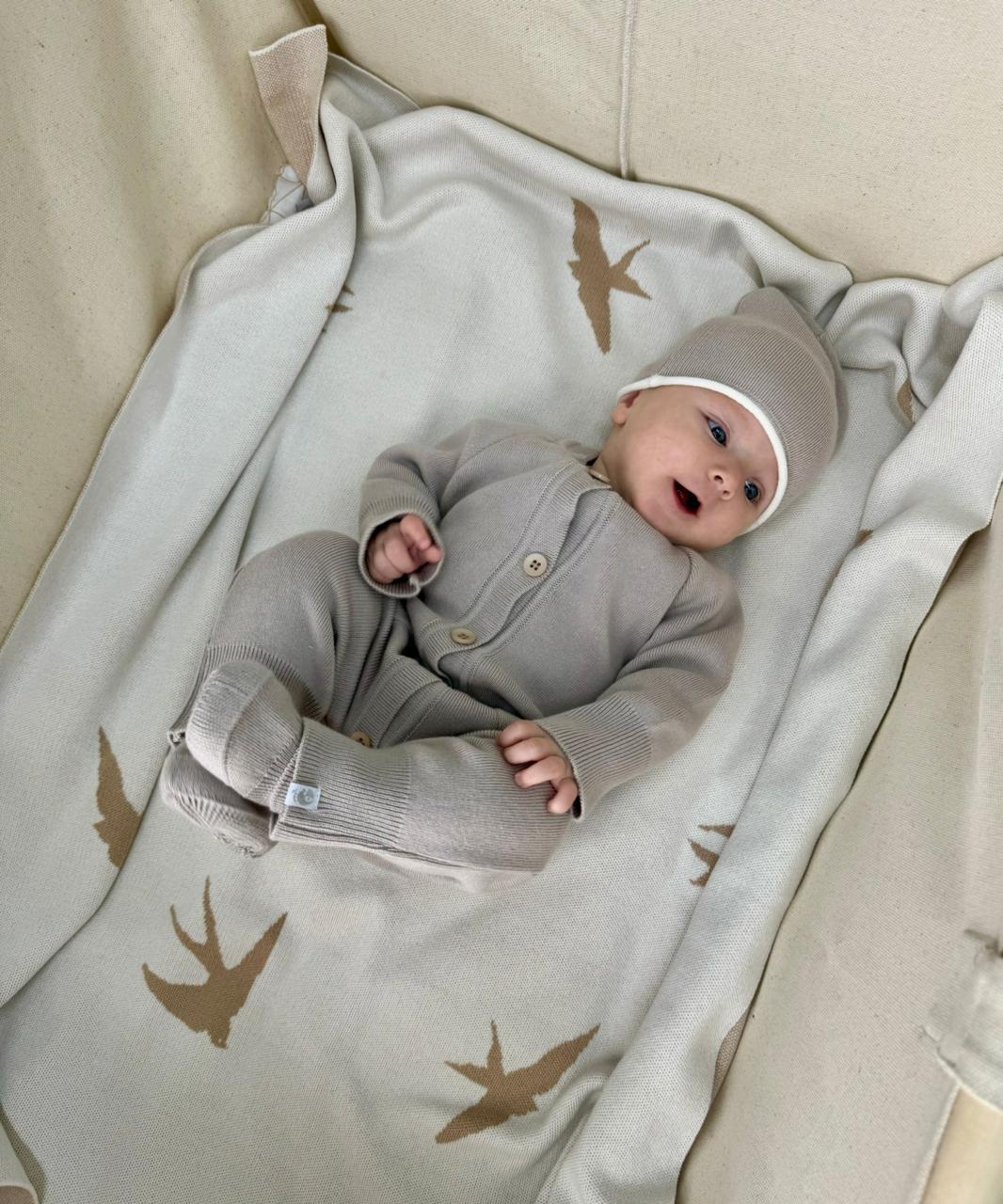Вязаный комплект одежды из экохлопка 3 предмета (бежевый)