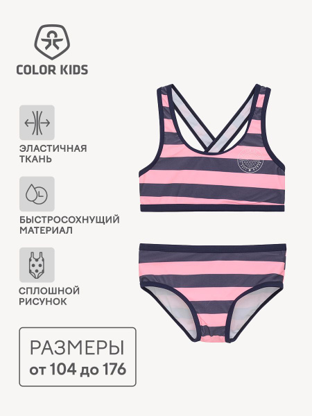 Купальник раздельный Девочки Color Kids синий Пляжный, размер 134 Китай