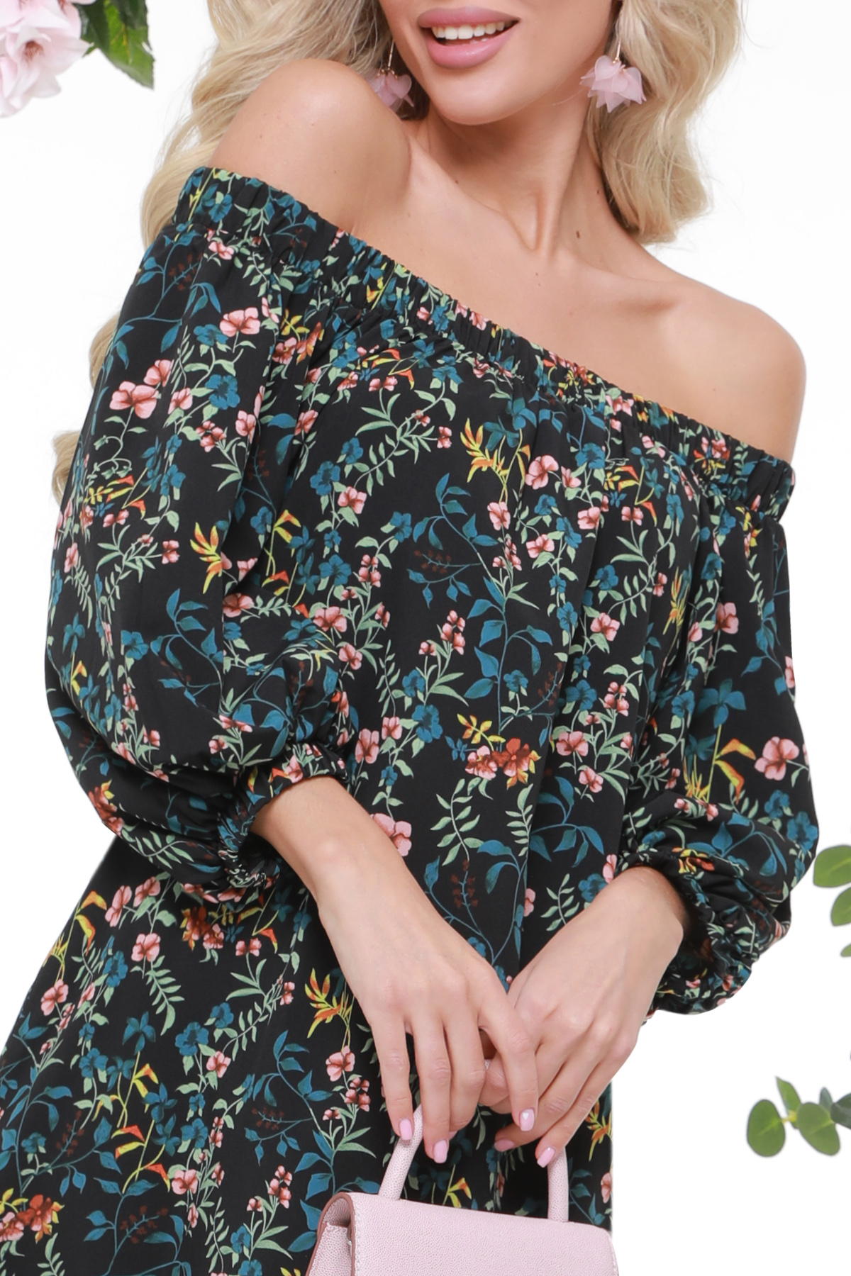 Платье В Цветочный Принт С Длинным Рукавом