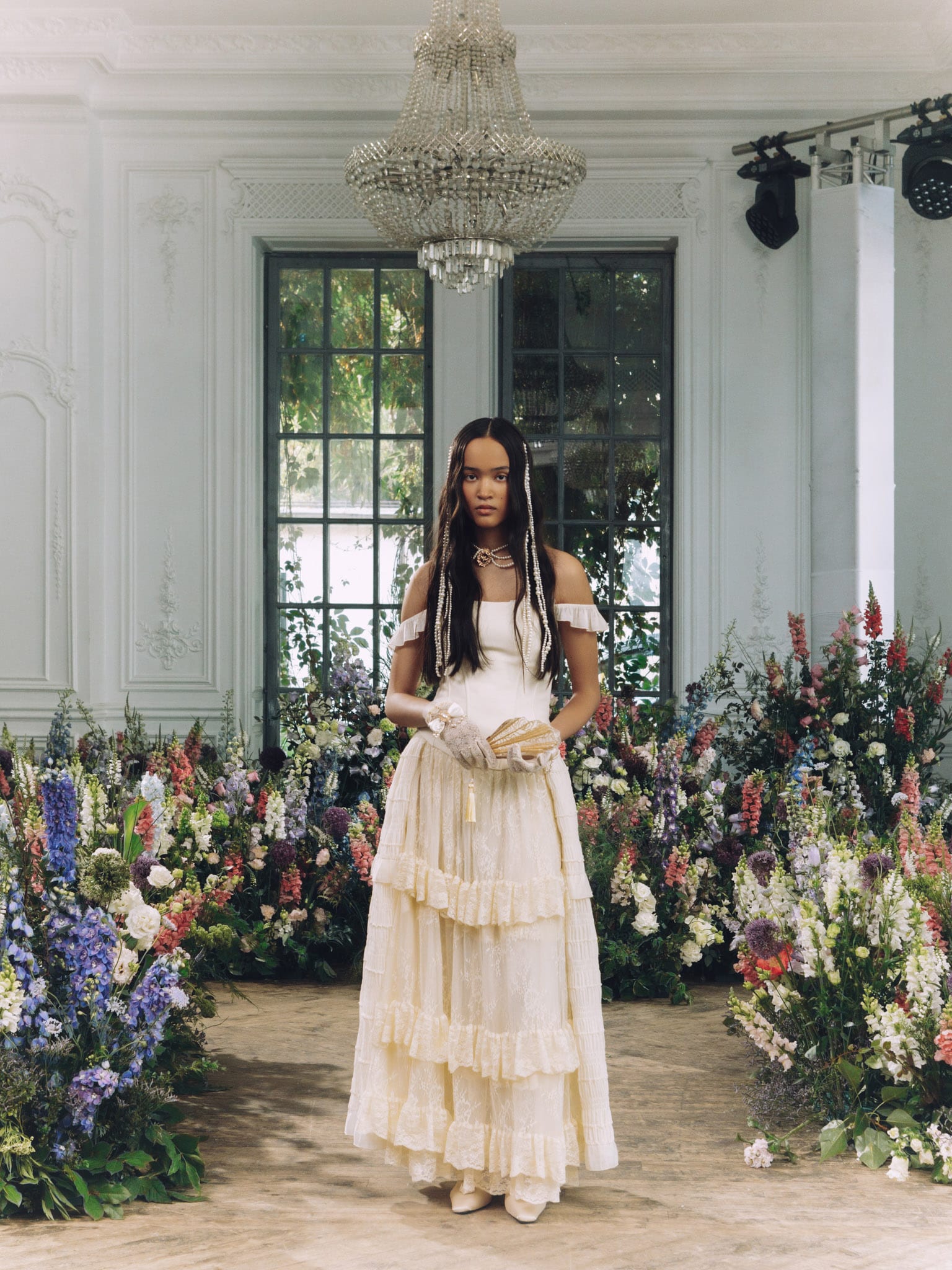Расклешенная кружевная юбка макси с воланами :: LICHI