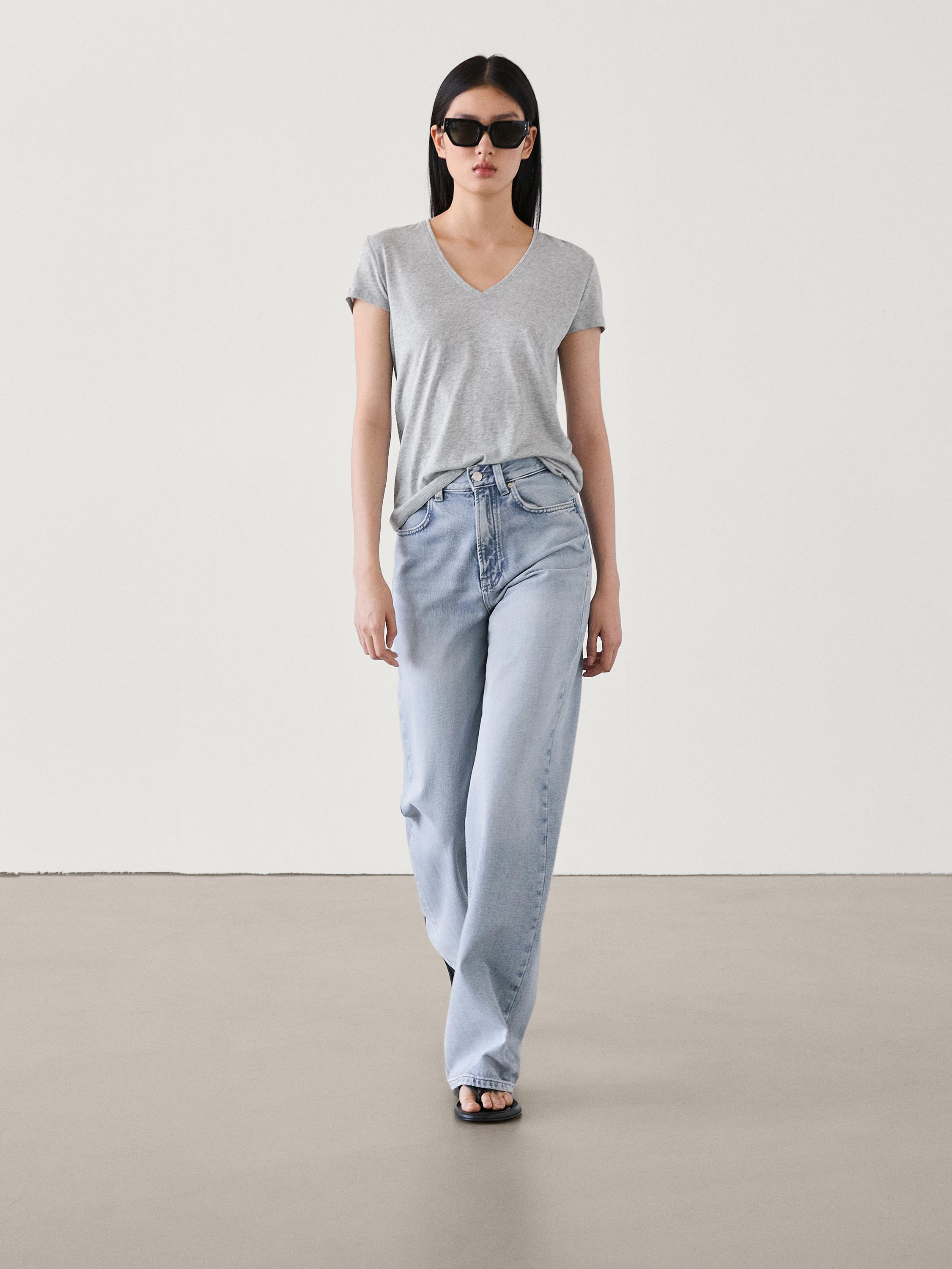 ФУТБОЛКА ИЗ ХЛОПКА С V-ОБРАЗНЫМ ВЫРЕЗОМ · Серый Меланжевый, Цвет Мха