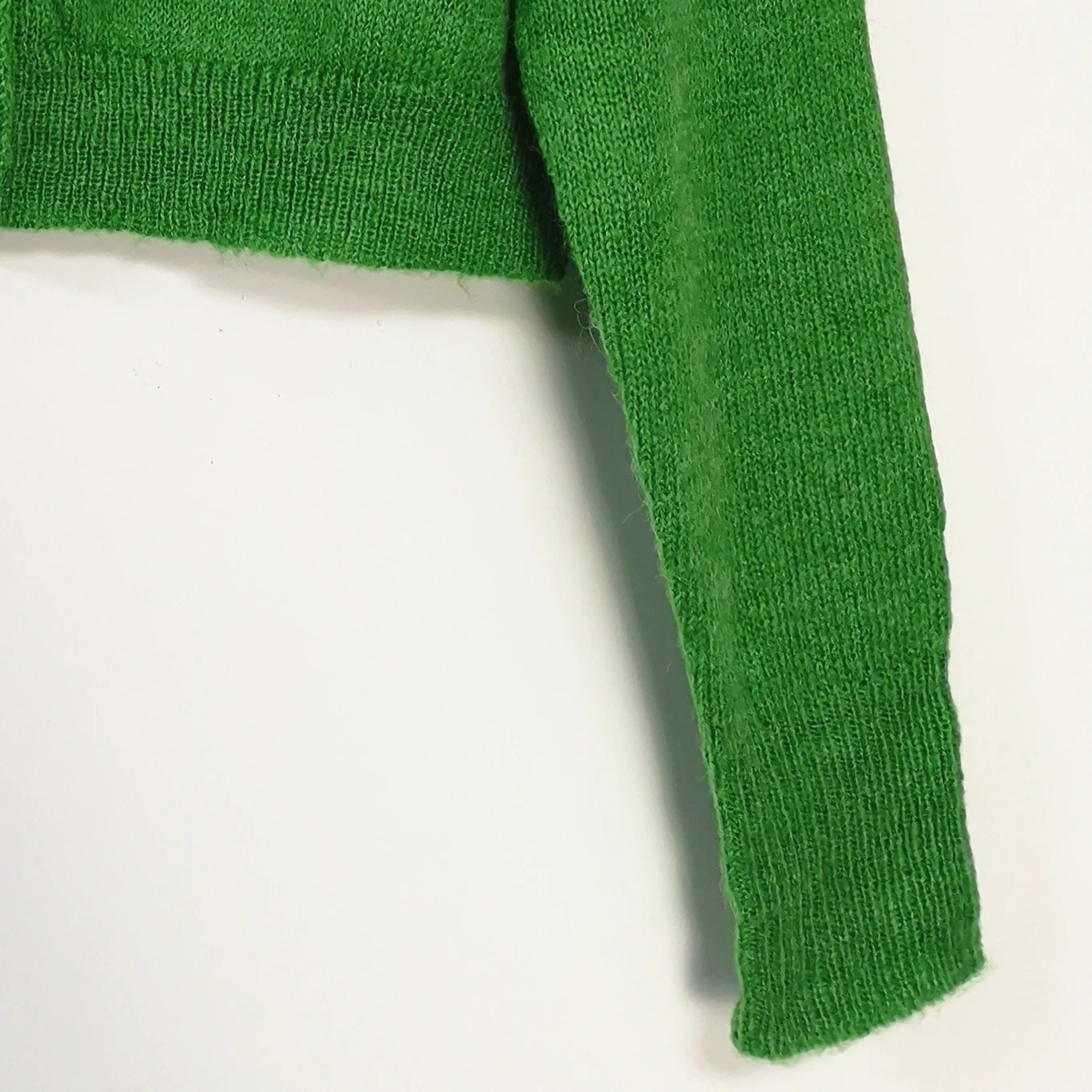 Зеленый Пушистый кардиган до талии с передней пуговицей вышитый логотип