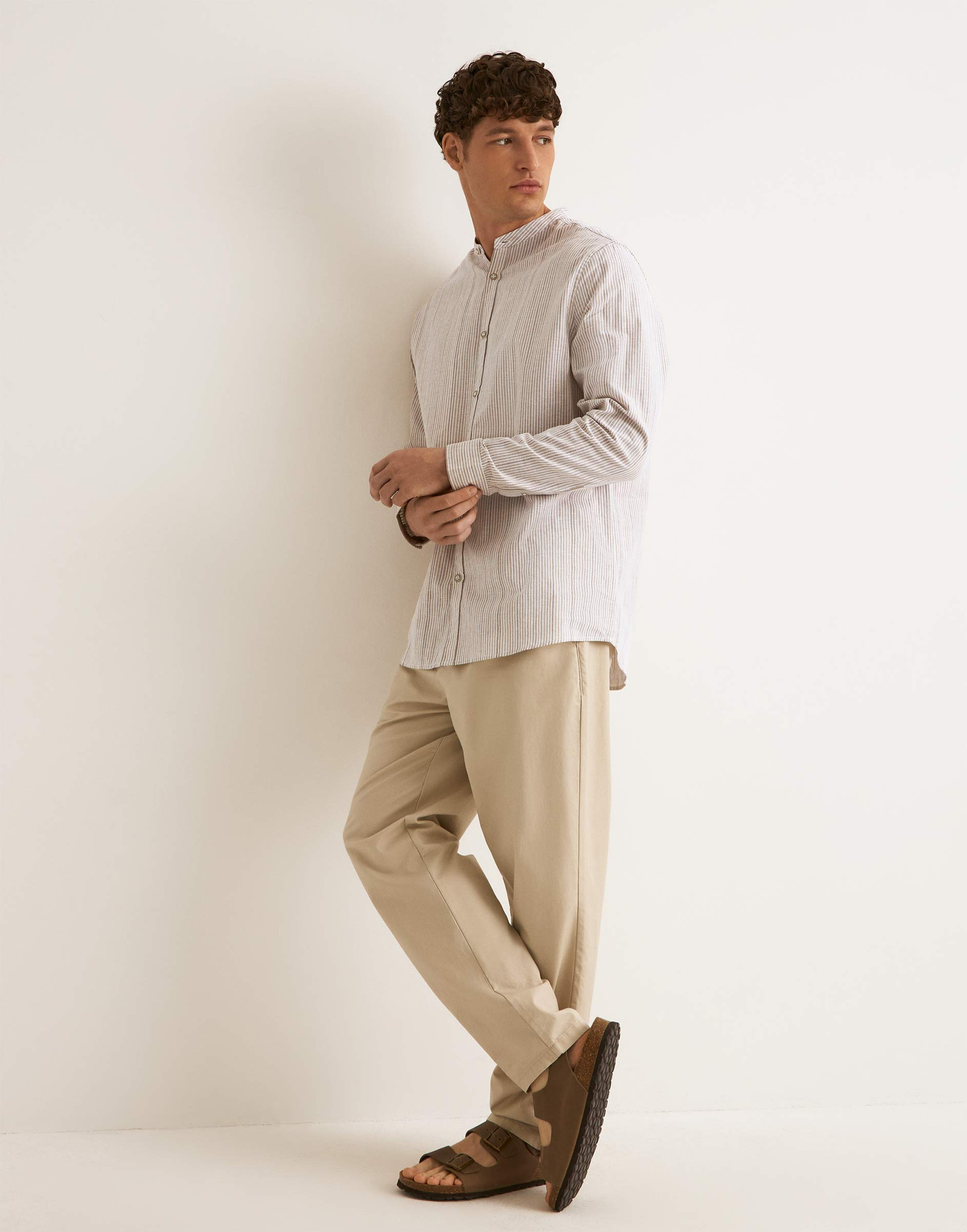 Рубашка с брюками льняные (Бежевый в черную полоску) купить в интернет