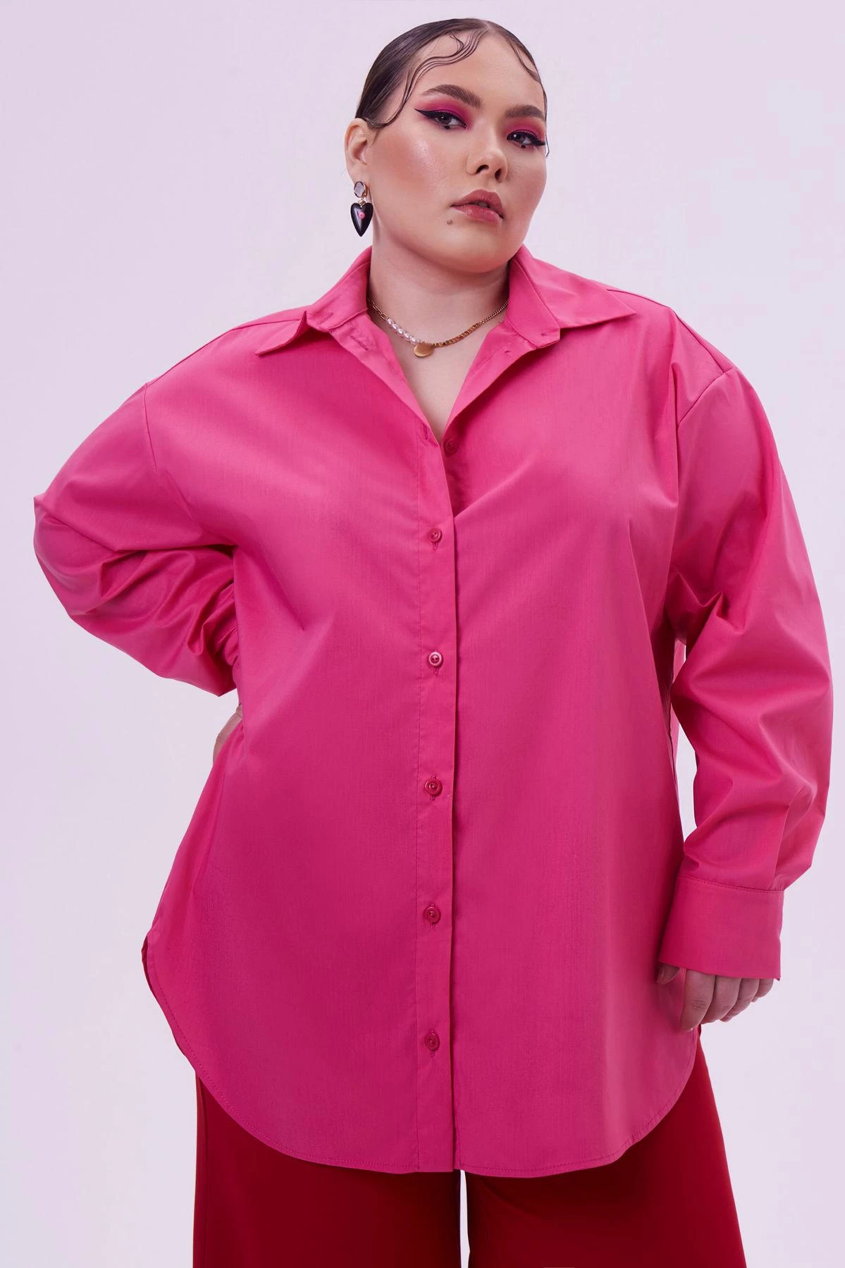 Рубашка relaxed fit из хлопка в оттенке фуксия