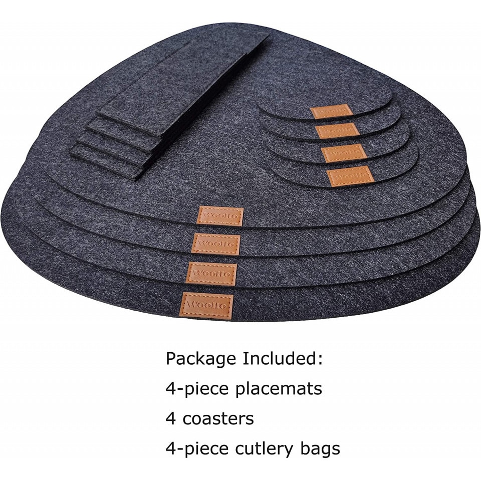 Комплект Подложки за хранене, За чинии, Чаши, Прибори, 12 бр., Сив