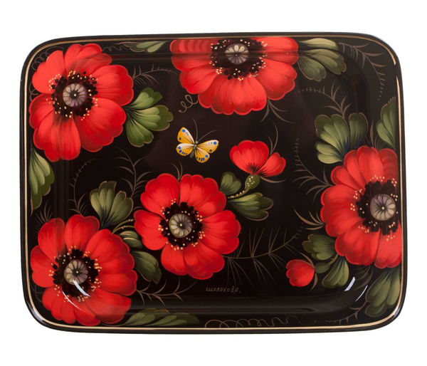 Поднос металлический Жостово, 33х26 см, с ручной росписью купить на