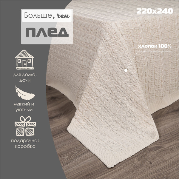 Плед , Хлопок, 240 см х 220 см купить на OZON по низкой цене (1813744486)