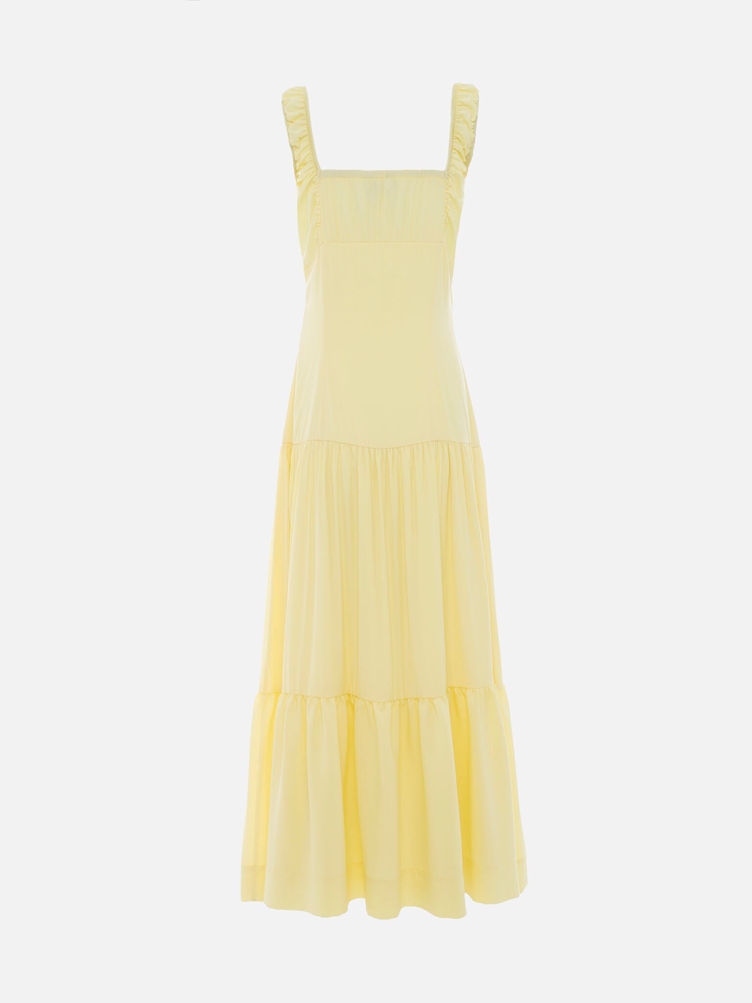 Платье миди на бретелях со сборками и бантом на лифе :: LICHI