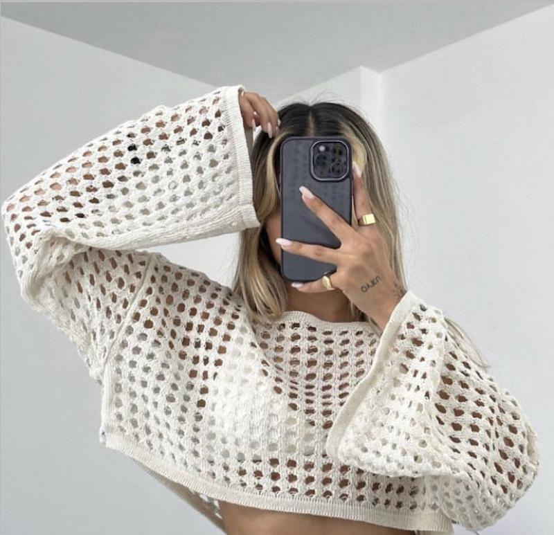 Летний топ полупрозрачной вязки из хлопка купить недорого с доставкой в